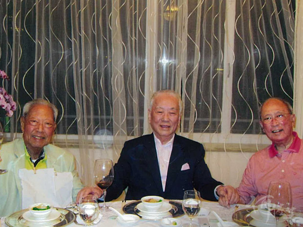 (左起)何鴻燊博士、李胡慕瑛女士及何佐芝先生